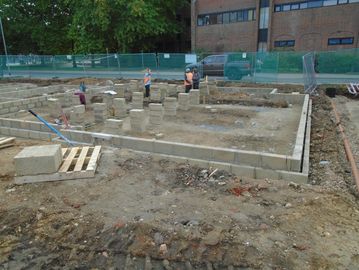 Construction is currently underway for the extension of a single storey building to add to the facilities available in this community hall.
