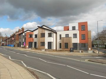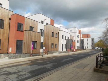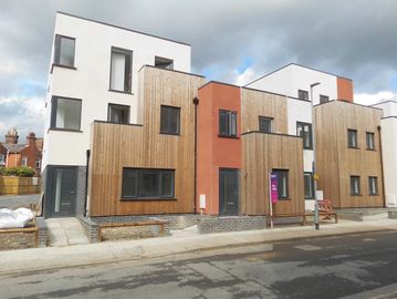 Timber frame construction of 3 bedroom houses, studio flat and 1 bedroom flat is competed with completion of whole development anticipated to be December 2023.
